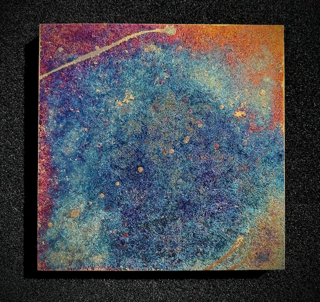 禅は宇宙。 アーティストZEN-SO KENJO がこの作品に禅宇宙を表現。 人工の塗料などは一切使わず、銀箔の硫化のみで全ての色彩を表現している。 硫化は分子原子レベルのもので決して人の手では制御できず、まさに自然が作り出す偶然の美。デジタルでは表すことはできない天と地のみぞ知る領域に美しさが宿る。 なぜ銀箔なのか?銀は不安定な物質で変化を起こしやすい。 私たちの心も常に揺れ動き、不安や葛藤を抱える時も多い。 しかし、良くも悪くも諸行無常です。常にこのままと言う事はありえません。 銀箔が硫黄という起縁(因)で美しい色(果)に変わるように、私たちの心もちょっとした起縁で不安や葛藤から解放されるのです。 また、仏教では四角形をバランスの取れた調和や安定の象徴とします。 このzen-cube one faceを身近に飾ることで生活や心に彩りが生まれますよう願います。 サイズ:27.3 ㎝×27.3㎝ 画材:パネル、銀箔 Zen is the universe. Artist ZEN-SO KENJO has expressed the Zen universe in this cube. No artificial paints or other materials are used; all colors are expressed solely through sulfurized silver leaf. Sulfuration occurs at a molecular-atom level and is completely uncontrollable by human hands, resulting in a truly accidental beauty created by nature. This beauty resides in a realm known only to heaven and earth, something that cannot be expressed digitally. Why silver leaf? Silver is an unstable substance and prone to change. Our minds are also constantly in flux, often filled with anxiety and conflict. However, for better or worse, all things are impermanent. Nothing can remain the same forever. Just as silver leaf transforms into beautiful colors (results) through the influence of sulfur (cause), our minds can also be freed from anxiety and conflict with the slightest opportunity. In Buddhism, the square is a symbol of balanced harmony and stability. We hope that displaying this zen-cube will add color to your life and your heart. Size: 27.3 ㎝×27.3㎝ Art Materials: Silver leaf