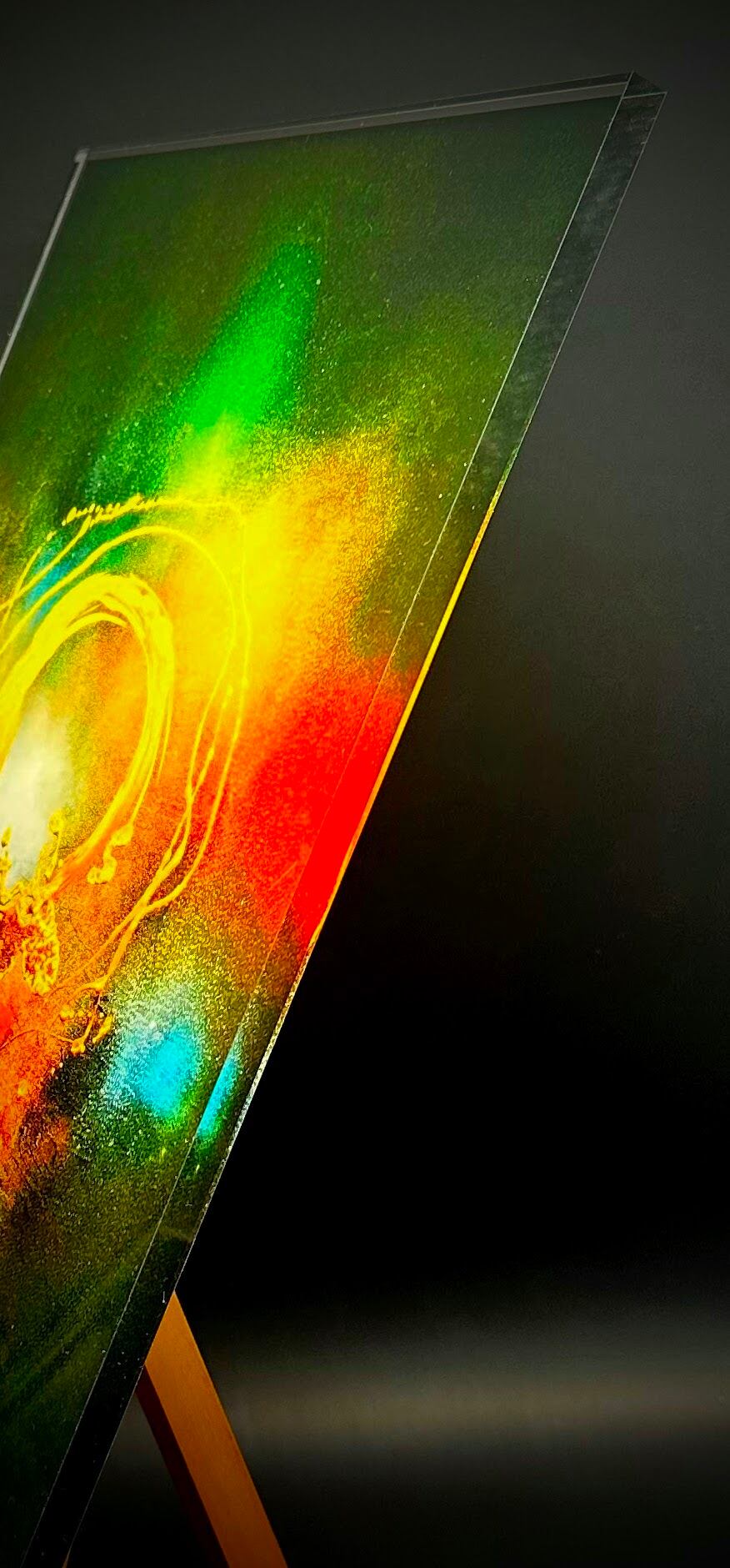 The "Acrylic Energy Flow -3" is a captivating art piece expressing the flow of energy that spans the cosmos. Utilizing transparent UV acrylic printing, this artwork conveys the mysterious beauty of the universe and the flow of energy to the observer.