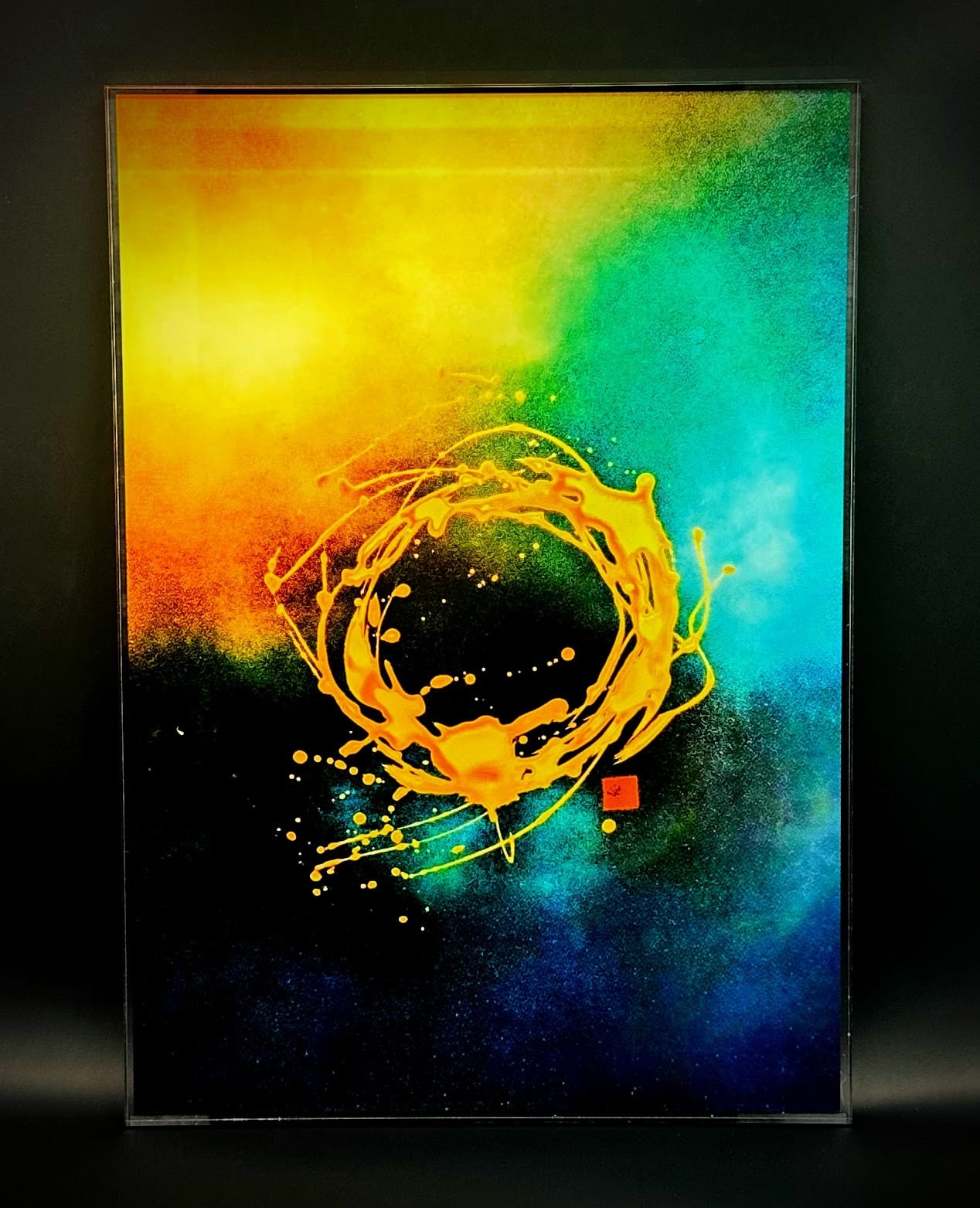 The "Acrylic Energy Flow -3" is a captivating art piece expressing the flow of energy that spans the cosmos. Utilizing transparent UV acrylic printing, this artwork conveys the mysterious beauty of the universe and the flow of energy to the observer.