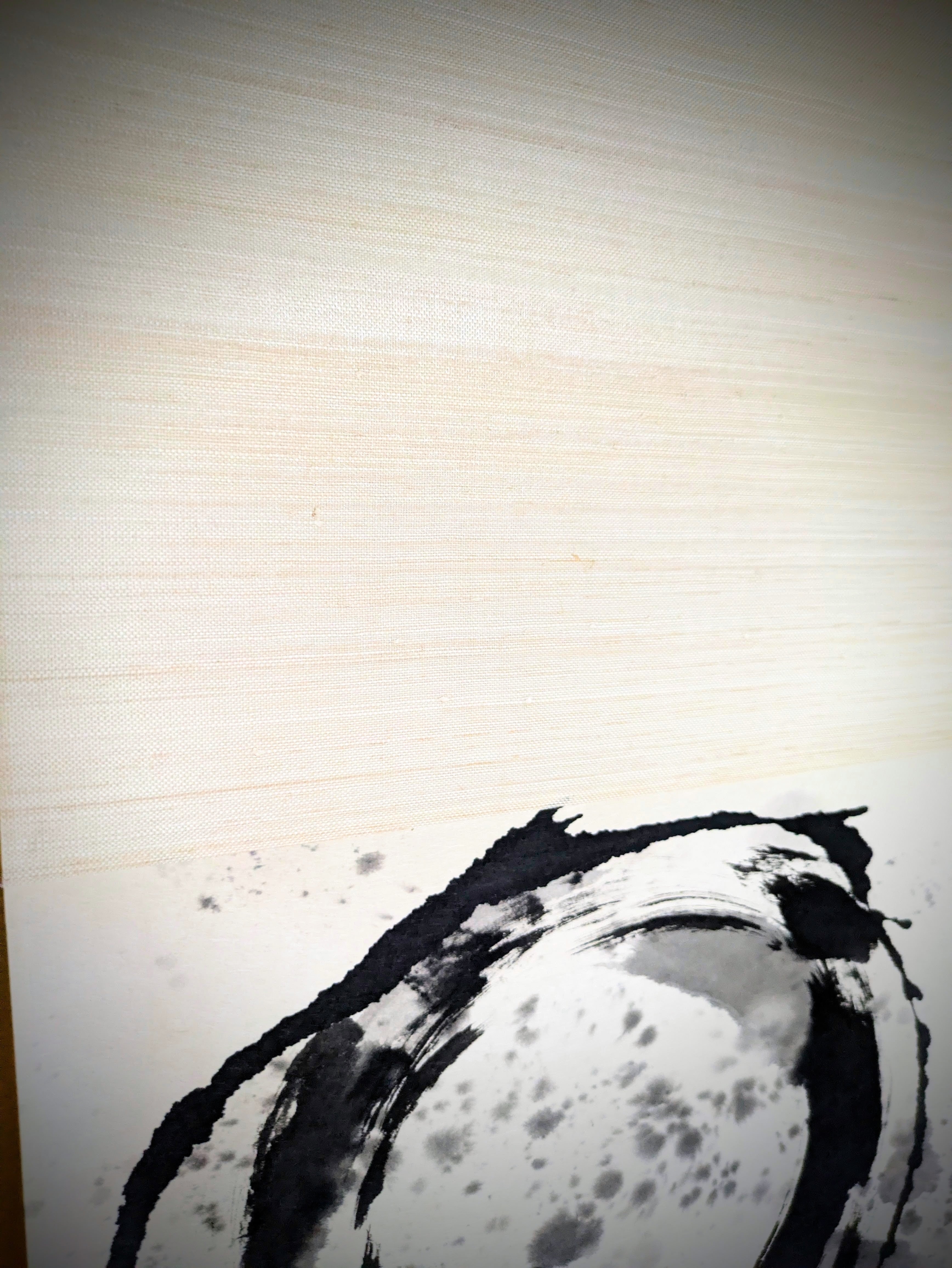 滑らかなラインと上品な墨の擦れや滲みで表現された円は、見る者に瞬間的な心の静けさをもたらします。円相の形は、禅の教えの象徴であり、すべての存在が持つ調和とバランスの真理を体現しています。