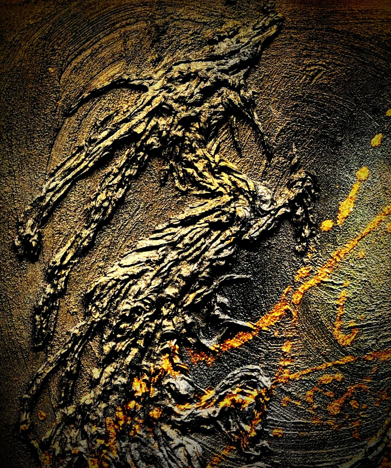 The "Dragon Series 65" captures the essence of a dynamic dragon brimming with energy through its artistic expression. This artwork, utilizing plaster, delivers a message full of vibrancy to the viewer.