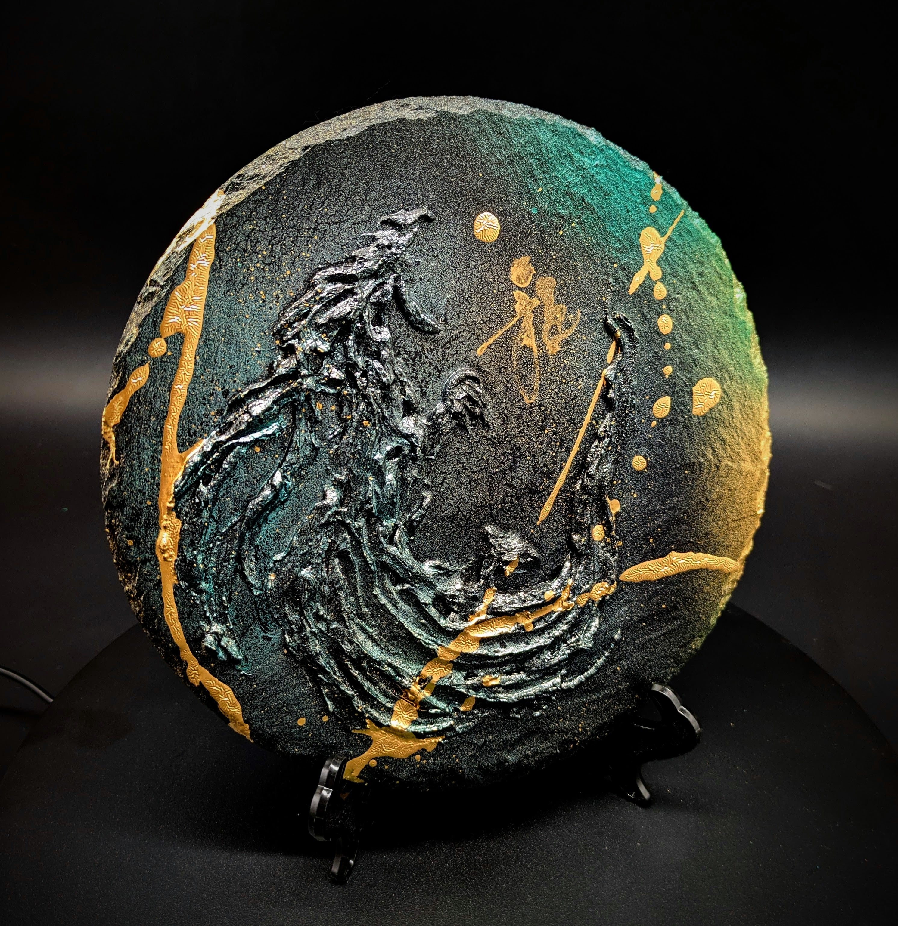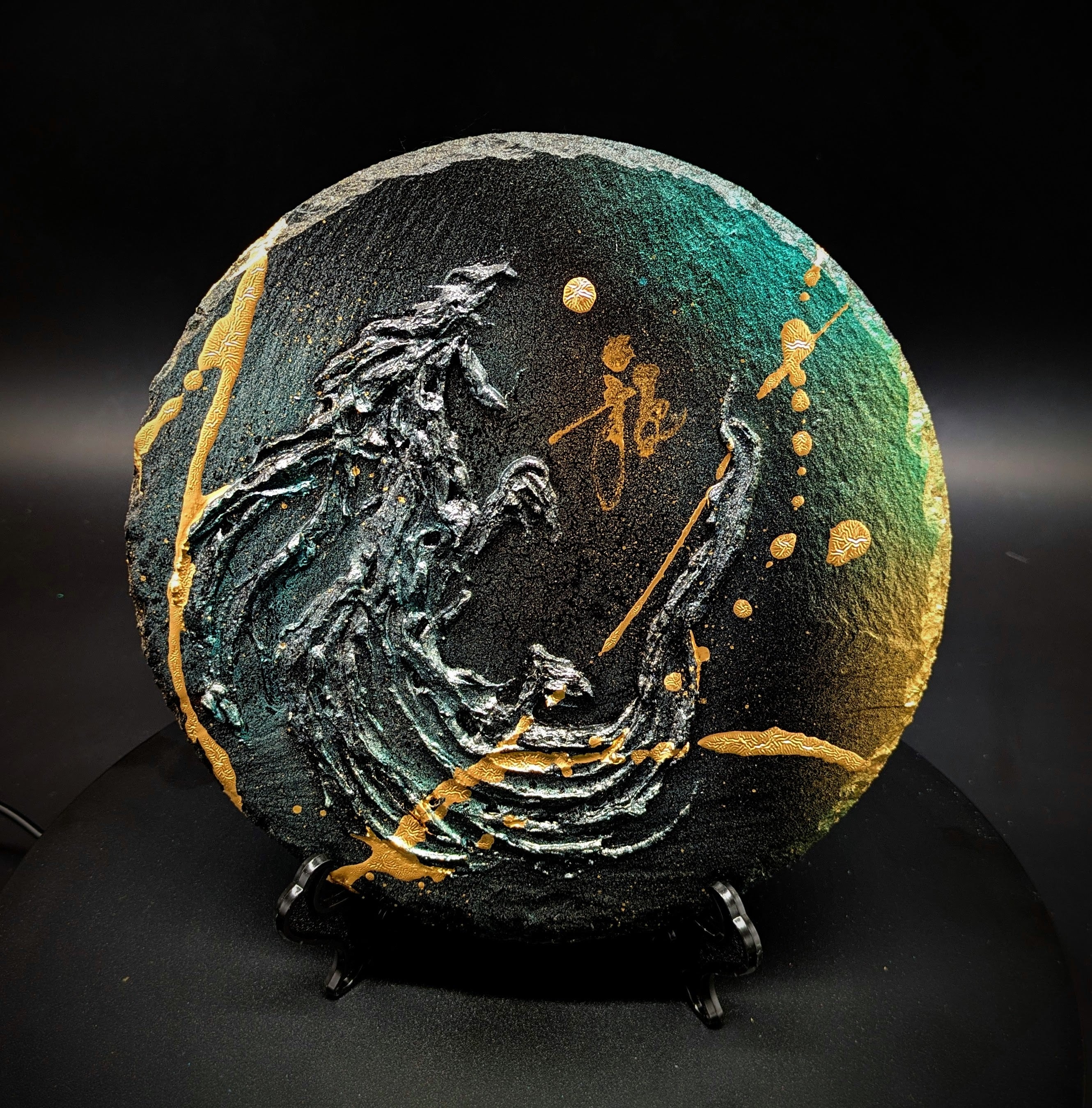 The "Dragon God Circle" is an art piece that embodies the formidable symbol of the dragon. Utilizing dynamic lines and vibrant colors, this work conveys the strength and majesty of dragons to the observer.