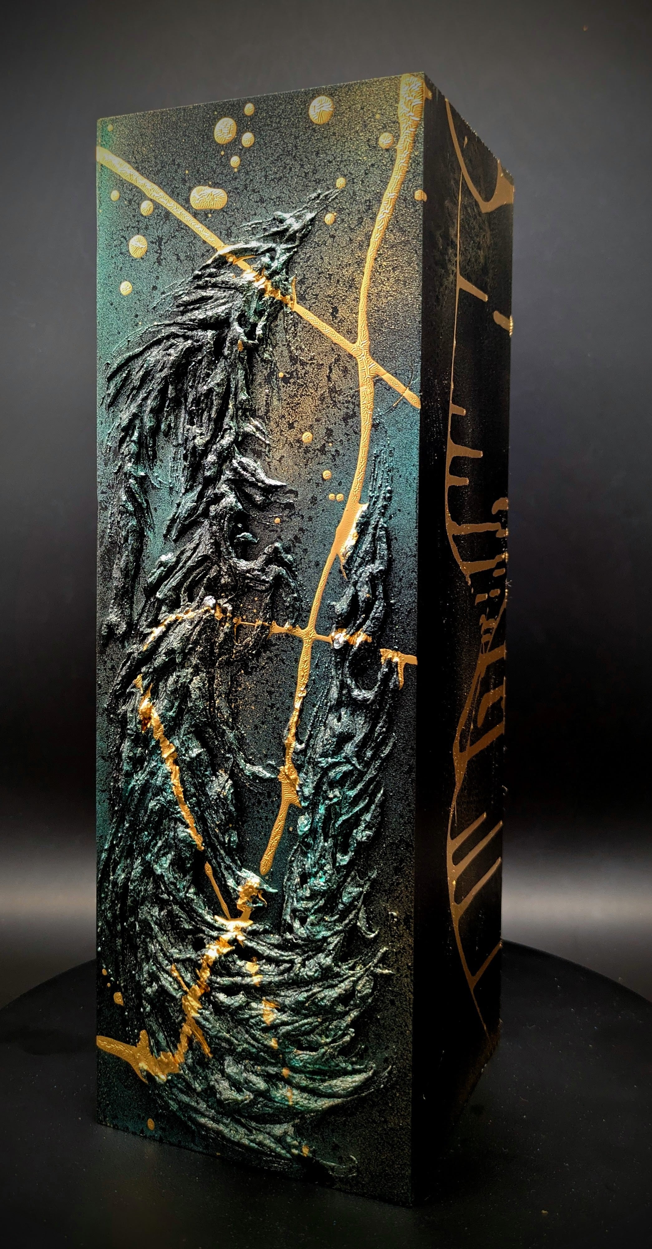 「龍神 長方体」は、龍の神秘的な力を具現化したアート作品です。この作品は、魅力的な形状と大胆な色彩を用いて、見る者に龍の持つ神秘と威厳を伝えます。